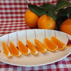 中身を切ってみると、本当にオレンジの果肉である。ジューシーで程よい酸味で